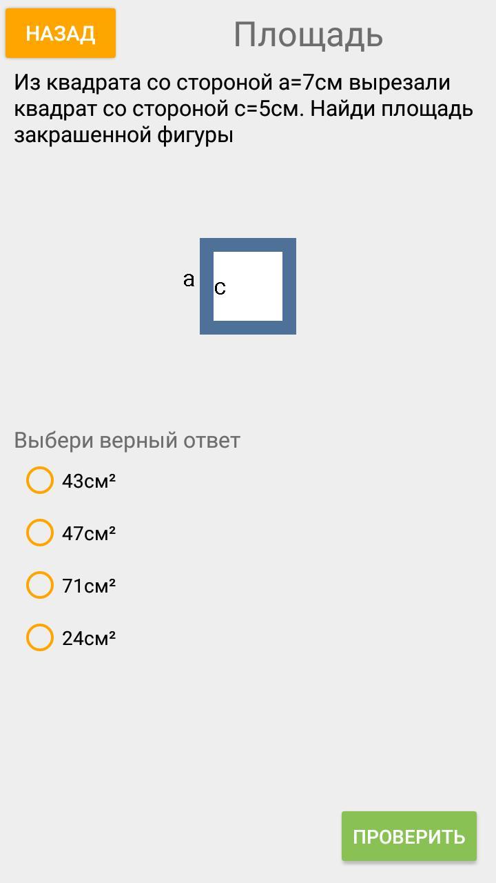 2. Высчитываем площадь маленького квадрата по той же формуле: