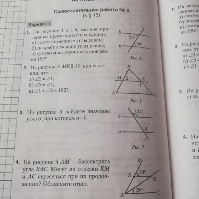 4. Нет не могут т.к. 29×2=58 поскольку АМ биссектриса, а биссектриса делит угол попалам => угол ВКМ и угол КАС соответственные.