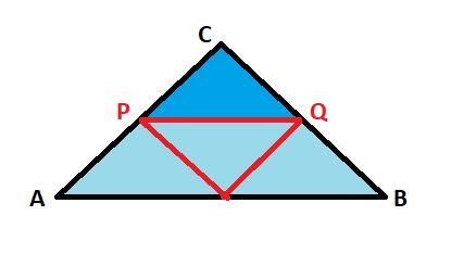проводим ещё две средних линии и получаем, что площадь треугольника АВС состоит из четырёх равных треугольников.
