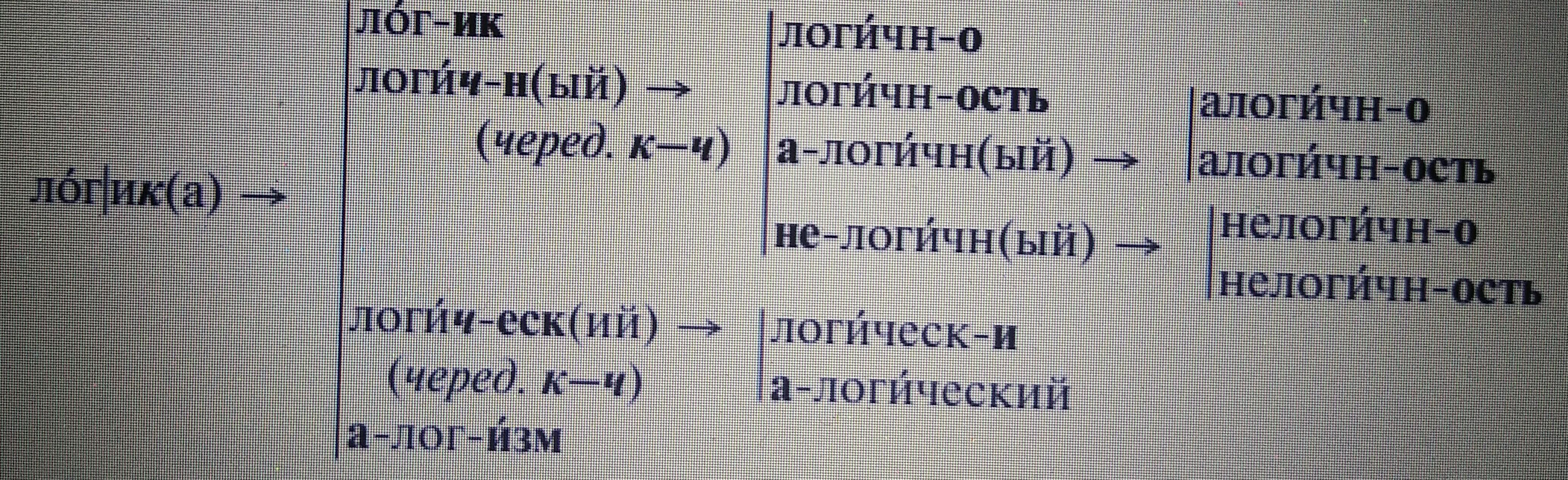 Логика -> | логический Логичный-> | алогичный