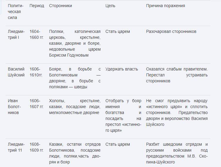 Помогите! история,7 класс. «Смутное» время. Составить таблицу из 3 столбиков: 1)лицо2)годы их активного участия в событиях смуты3)участие в событиях смуты. Лица: Борис Годунов, Фёдор Годунов, Лжедмитрий 1, м.Мнишек, ЛжеДмитрий 2,лжедмитрий 3.прошу, хоть ЧТО НИБУДЬ!!!!!!!!!