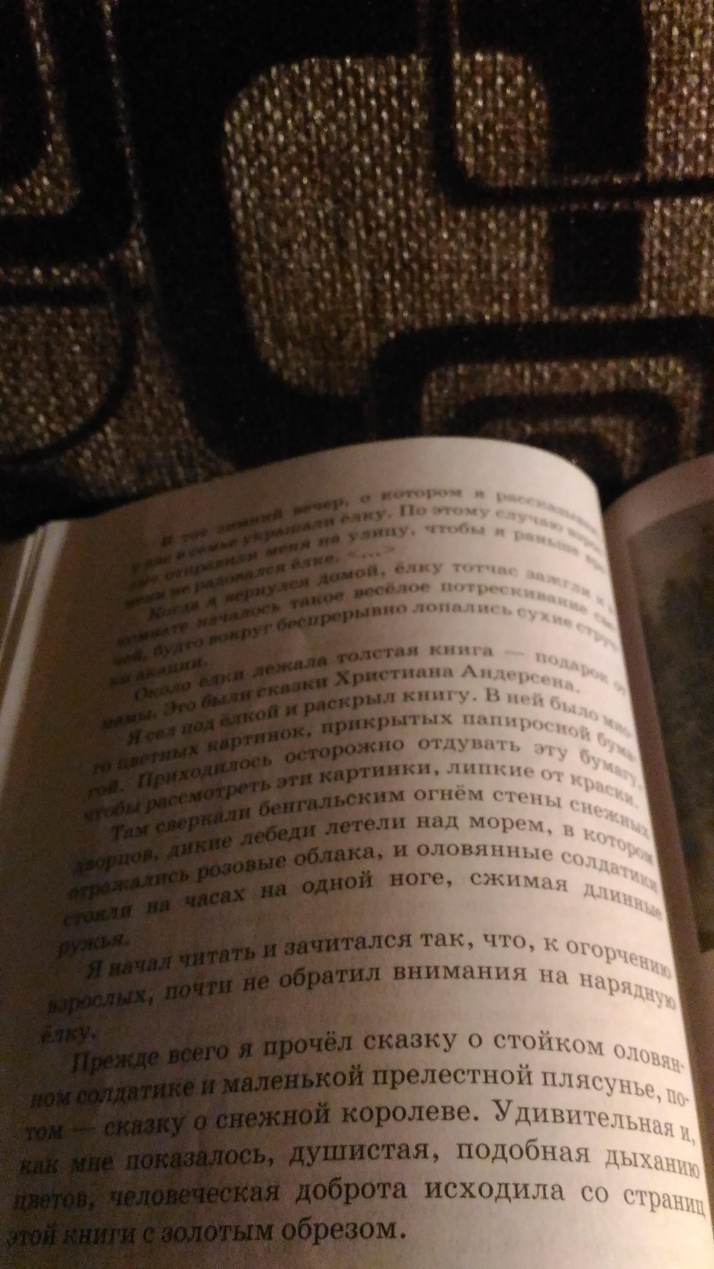 Он прочёл эту книгу, когда ему было всего 7 лет. Не все взрослые могут похвастаться тем, что помнят книги, прочитанные в детстве. Но книга Андерсена полна волшебства и чуда, о котором так мечтают все дети. Именно поэтому книга Андерсена так дорога Паустовскому.