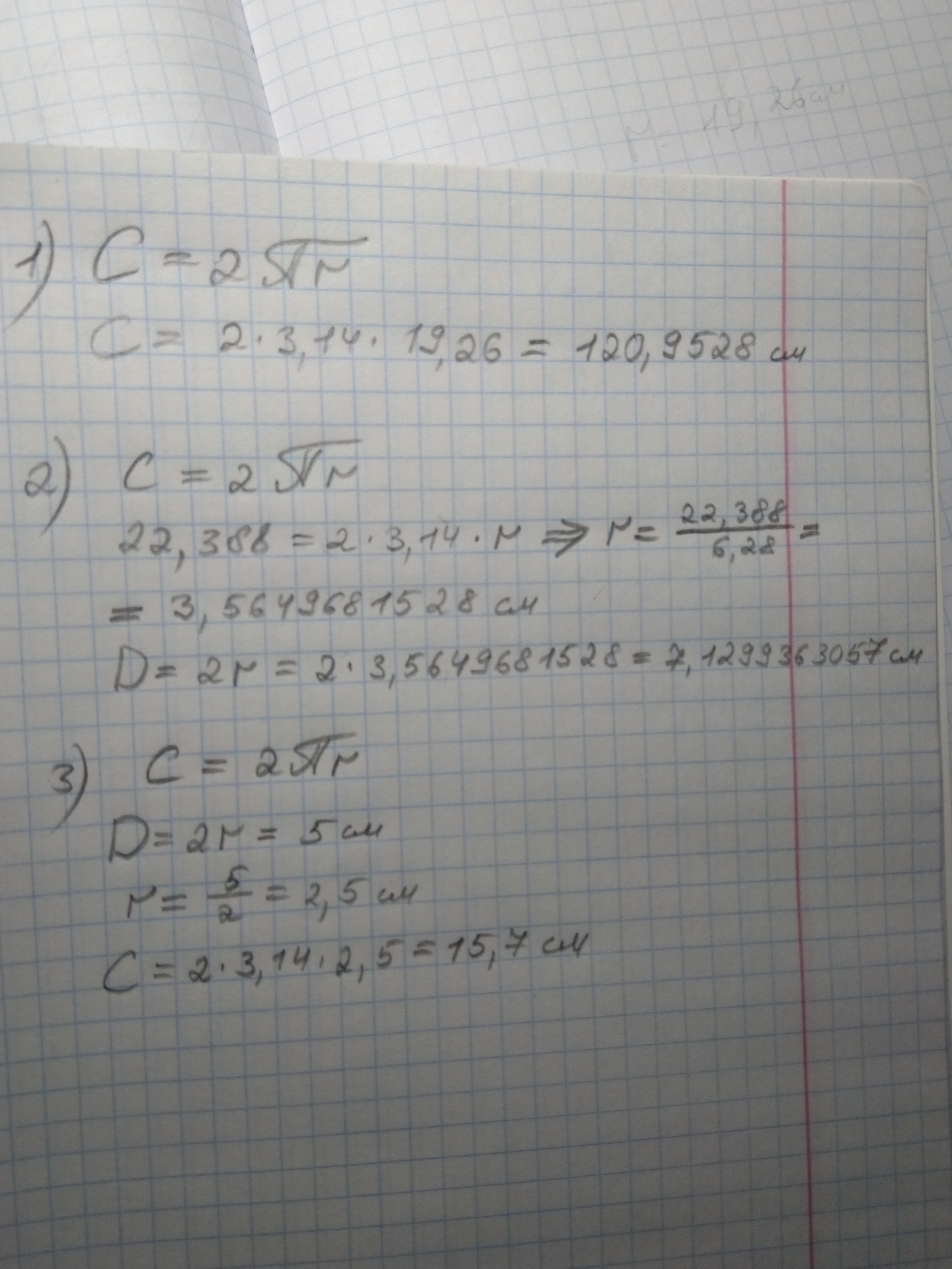 3)Діаметр кола дорівнює 5 см. Значення числа π≈3,14.