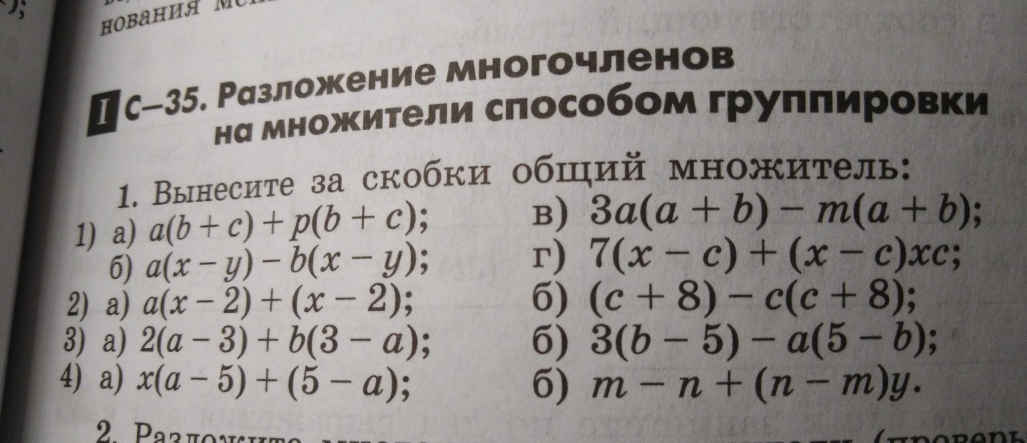 1) а) a(b + c) + p(b + c) = (a + p)(b + c)
