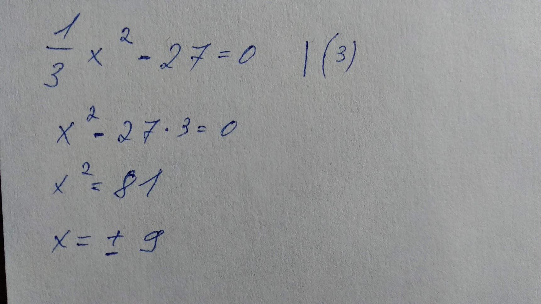 Умножаем обе части на три. Оставляем икс слева. Другое переносим с противоположным знаком. Извлекаем корень обоих частей. Получаем два значения. 9 или -9.