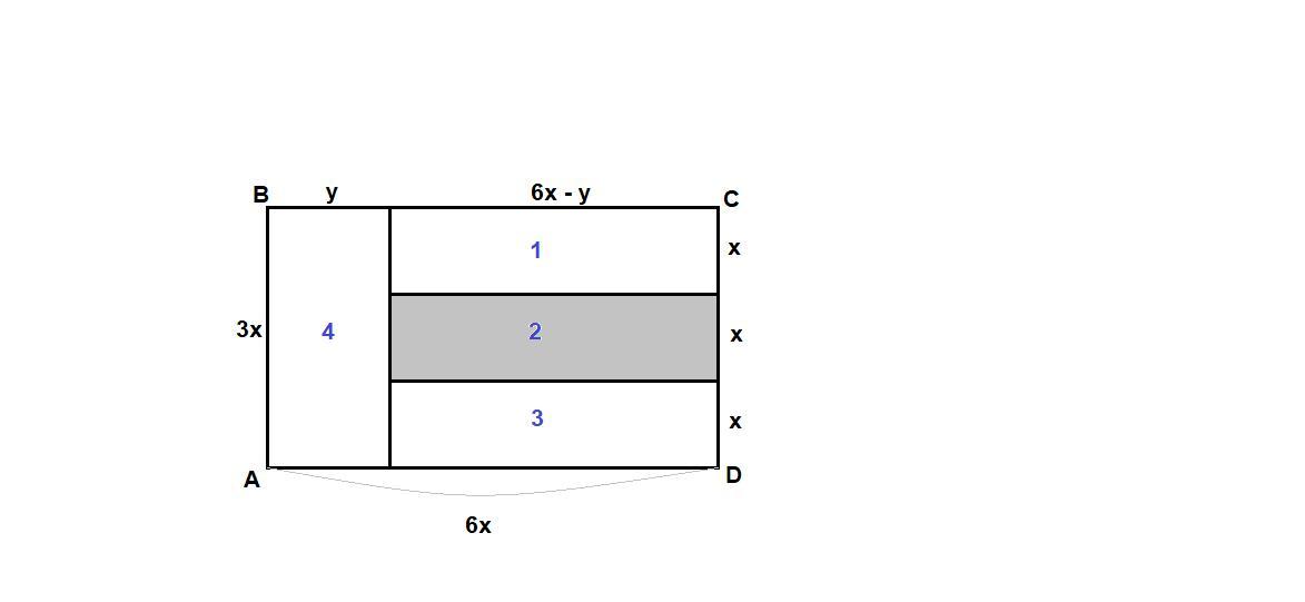 Итак, стороны закрашенного прямоугольника равны х и (6х - у).
