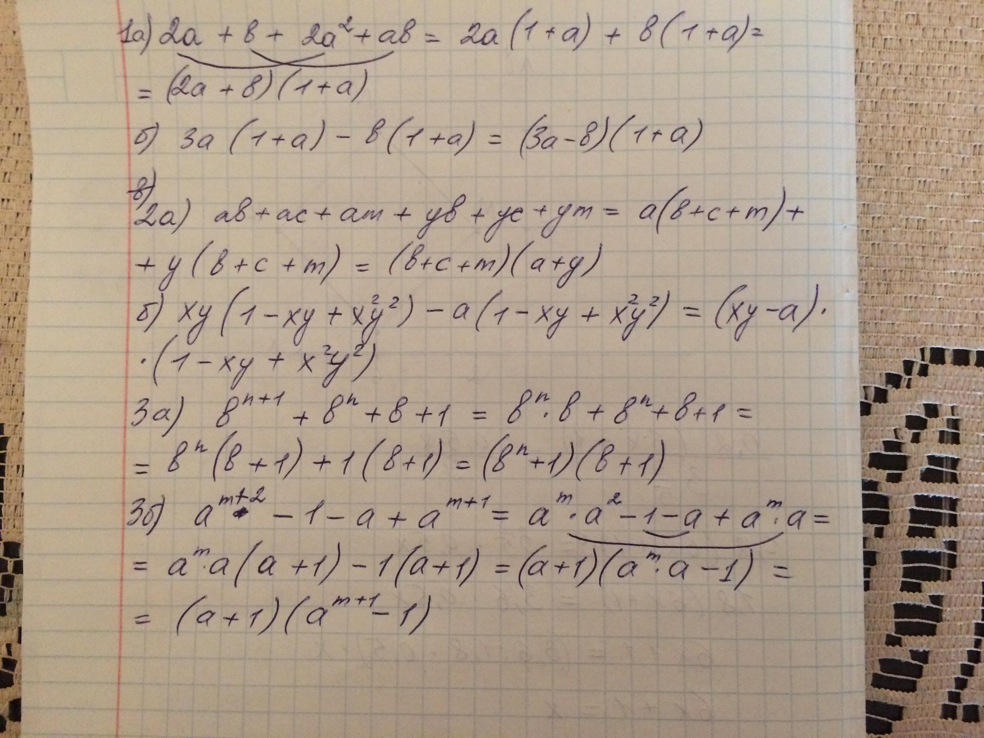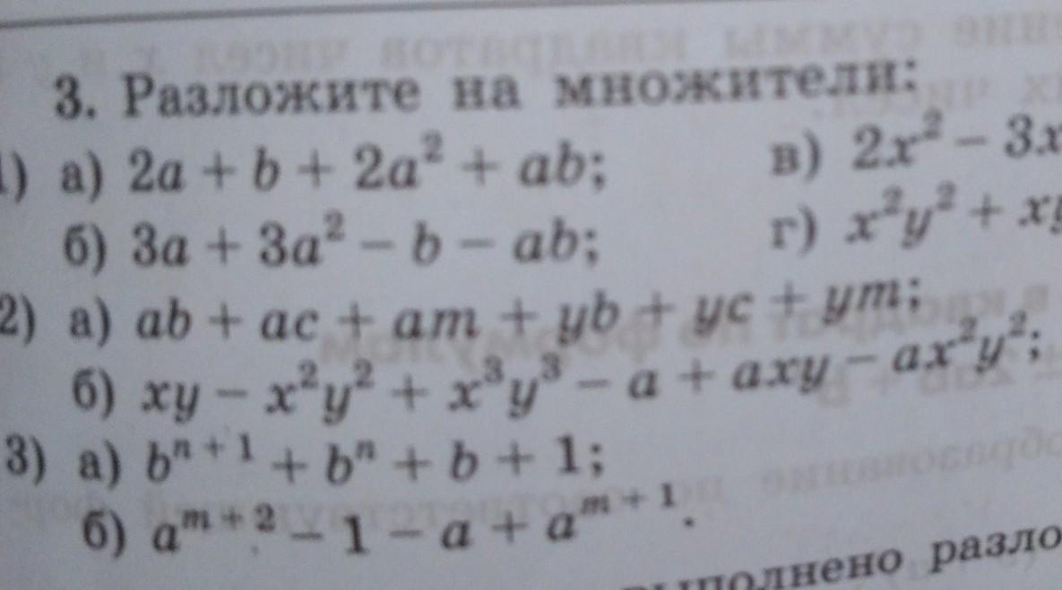 в)2х в квадрате -3х+4ах-6а г) х в квадрате у в квадрате +ху+аху+а. Сможешь решить?