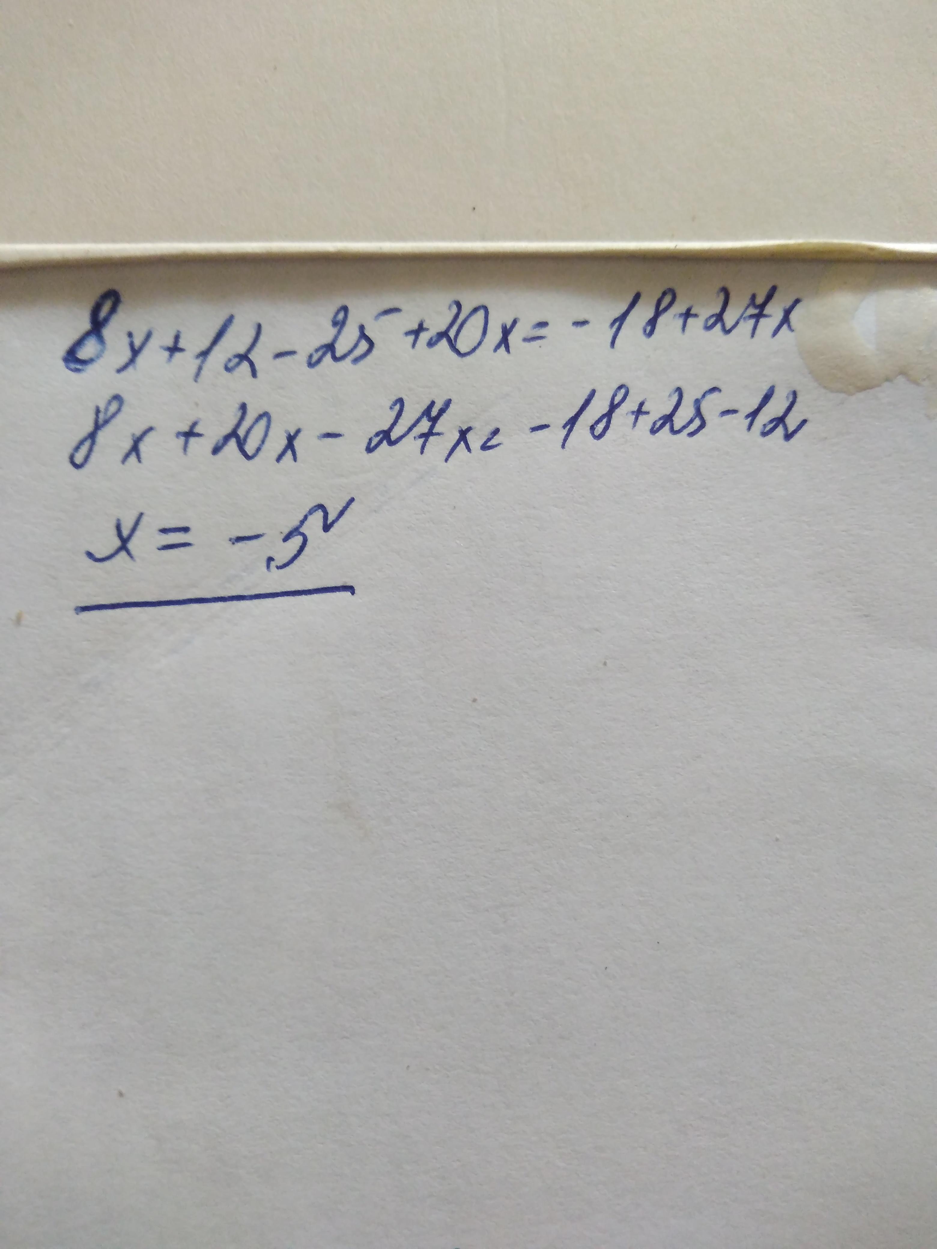 4(2x+3)-5(5-4x)=-9(2-3x)