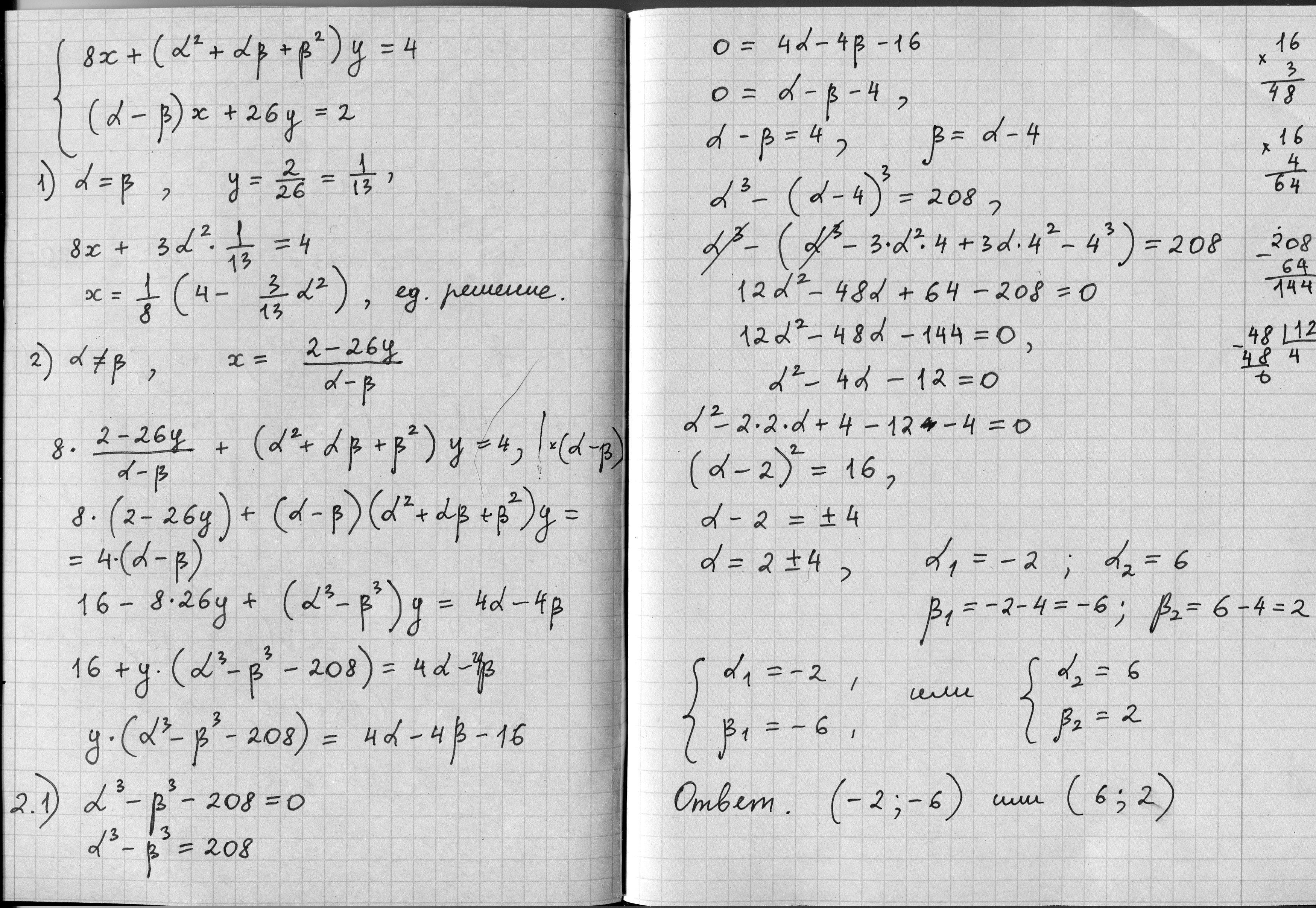 (α-β)х +26у = 2 | *2, ⇒ 2(α-β)х + 52у = 4 .