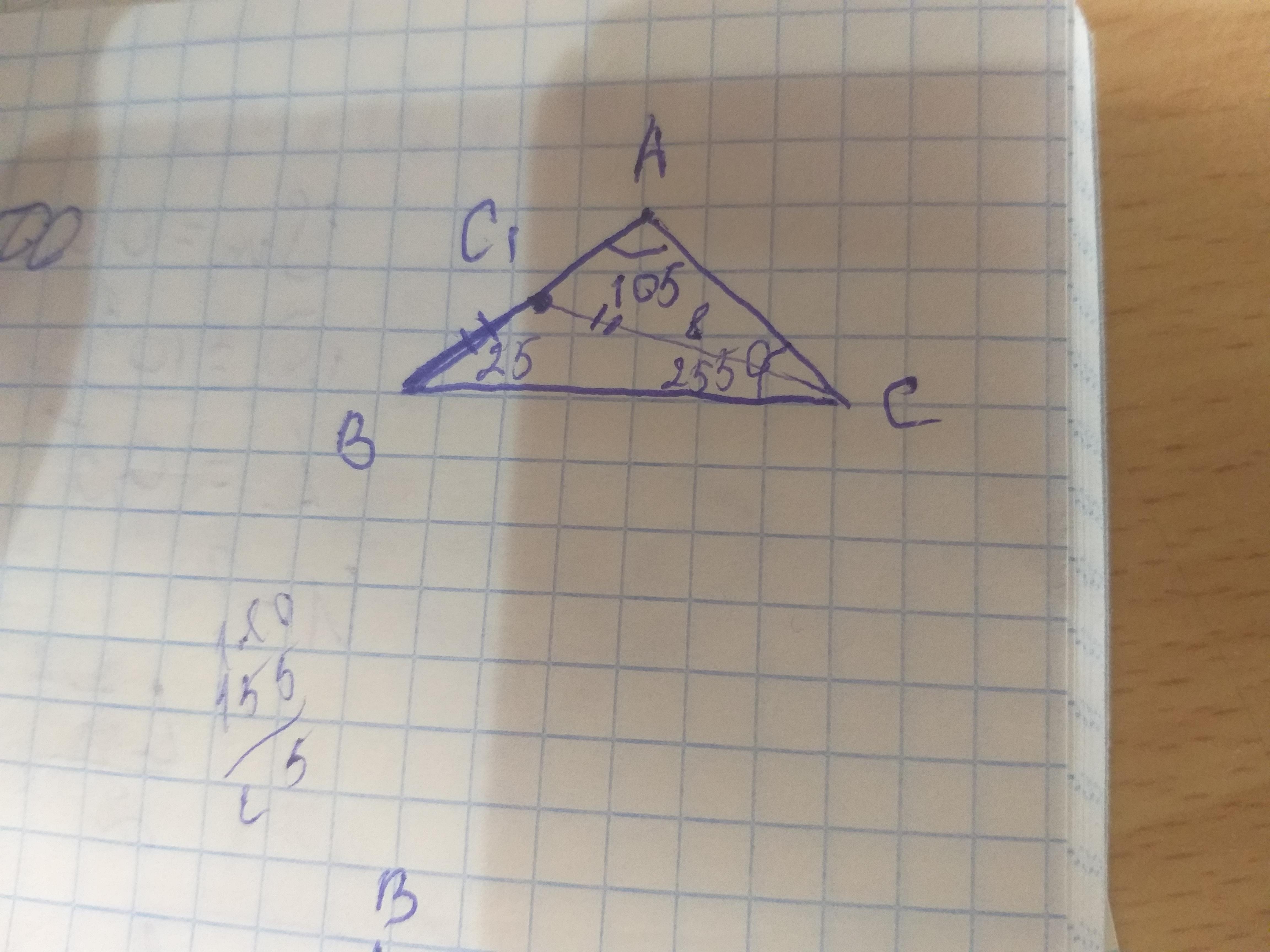 Так как СС1 биссектриса, то угол С1СВ тоже 25, следовательно ВС1=8