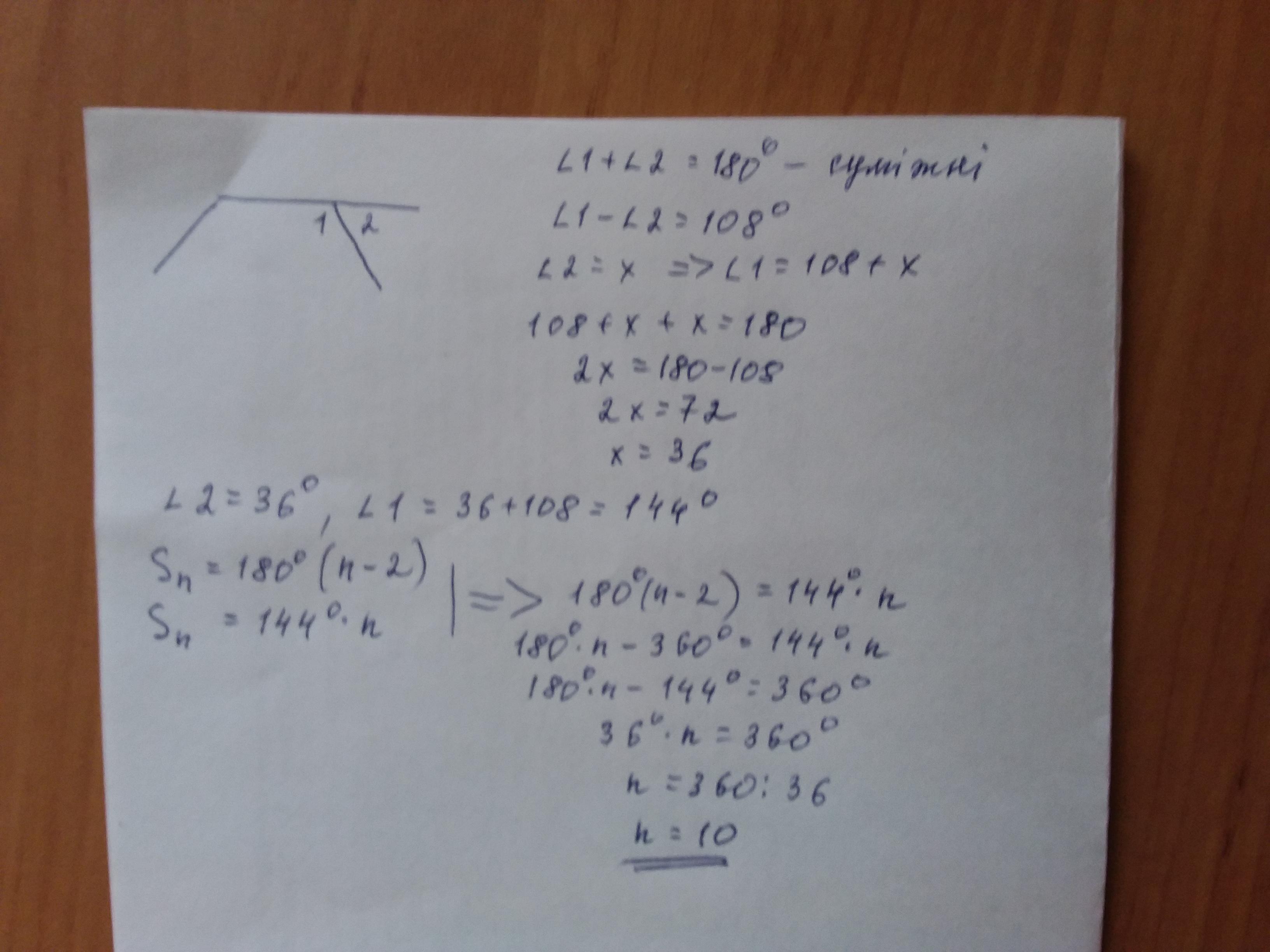 Скільки сторін має правильний многокутник, внутрішній кут якого на 108 бiльший за зовнiшнiй.