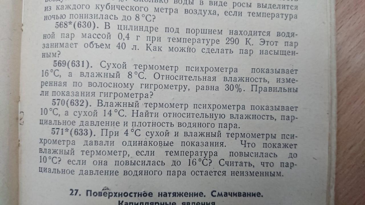 569) по таблице разности показаний сухого и влажного термометров (психрометра) находим показание влажности 49%. Это значение не совпадает со значением волосяного гигрометра.