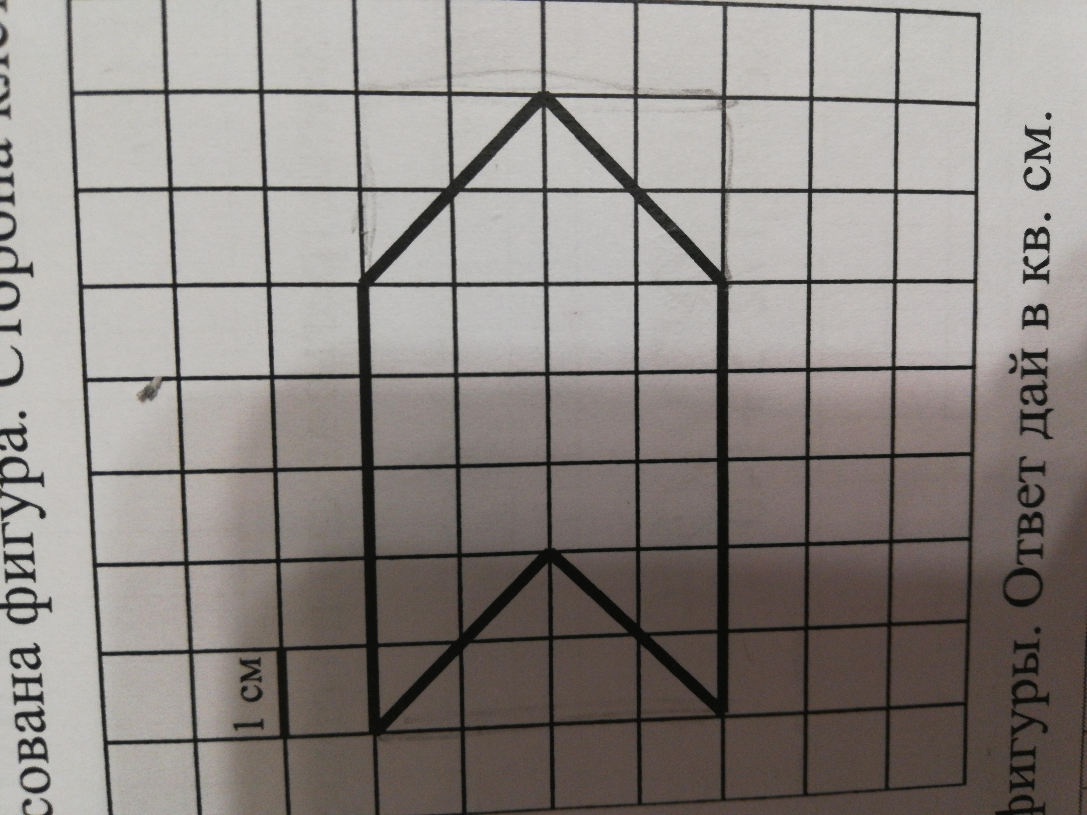 S = 20 см2 сначала считай полные клеточки потом 2 тоеугольника это 1 клеточка вот и посчитай