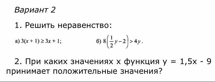 2) y = 1,5x - 9 y > 0