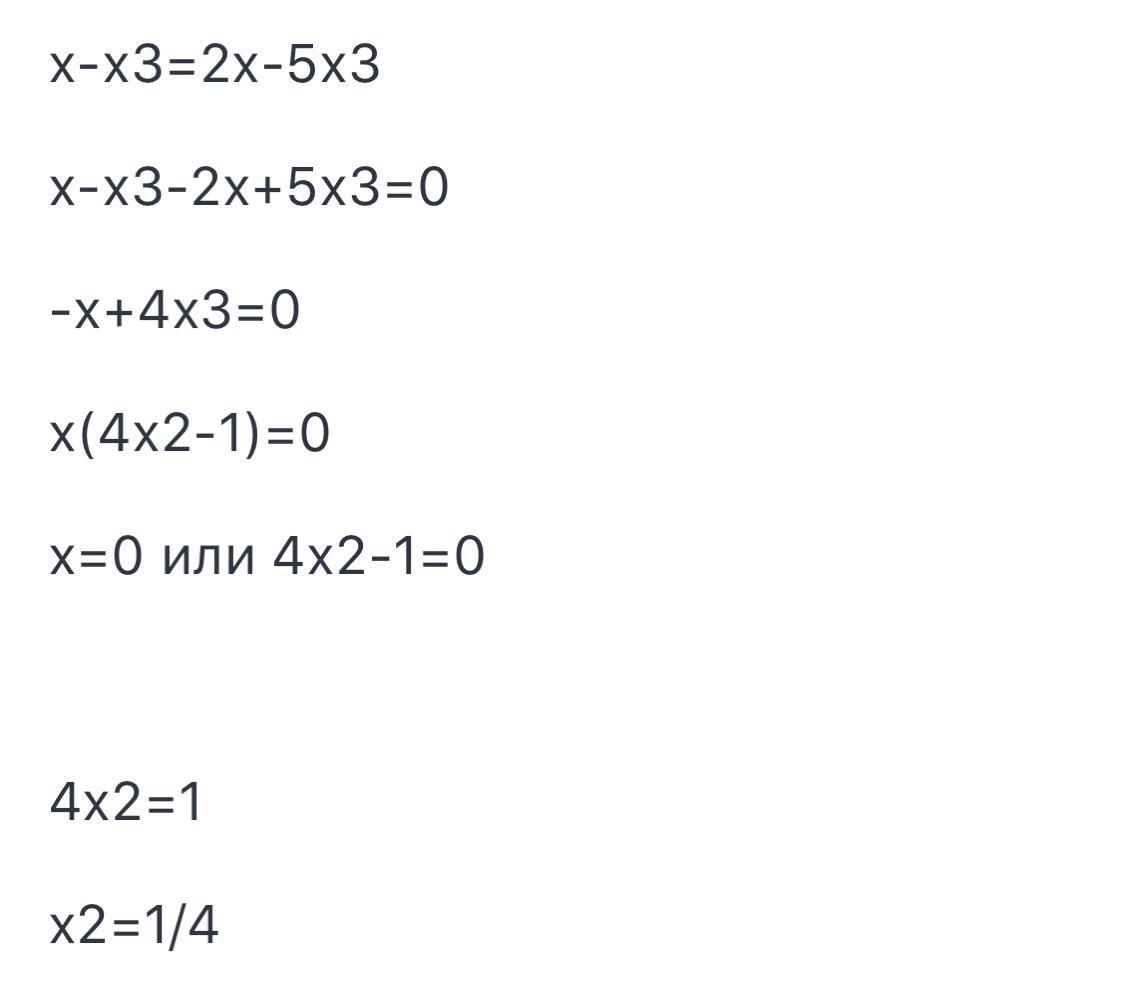 Найдите значения х, при которых значения выражений х-х^3 и 2х-5х^3 равны.