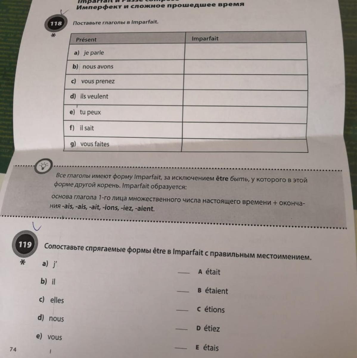 118. je parlais, nous avions, vous preniez, ils voulaient, tu pouvais, il savait, vous faisiez