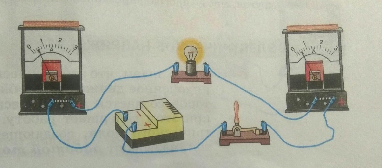 Нарисуйте принципиальную схему электрической цепи, которая изображена на рисунке. Укажите на схеме направление тока в цепи