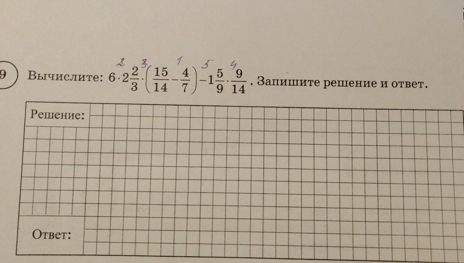 помогите решить пример по действиям. (возможно я не правильно раставила действия ручкой)