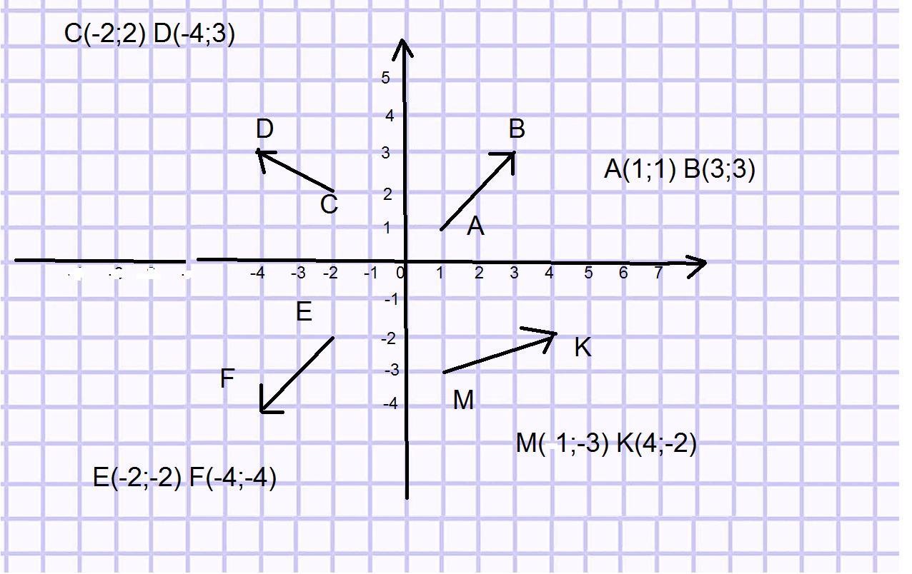 Начертите в каждой четверти координатной плоскости по одному вектору. запишите координаты их начала и конца пж войдите в положение помогите срочно! Даю 25 баллов!