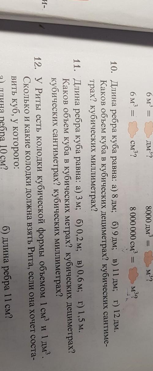 10) а. 512 дм^3; 512000 см^3; 512000000 мм^3