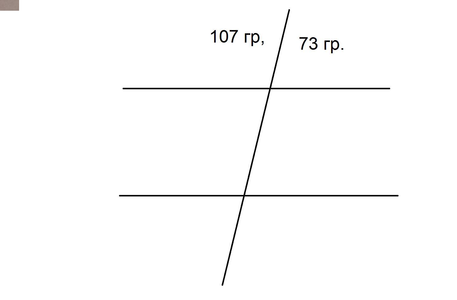 острый угол тогда образует с одним из тупых соответственных углов смежный угол ⇒ острый угол =180°-107°=73° другие острые углы тоже=73°