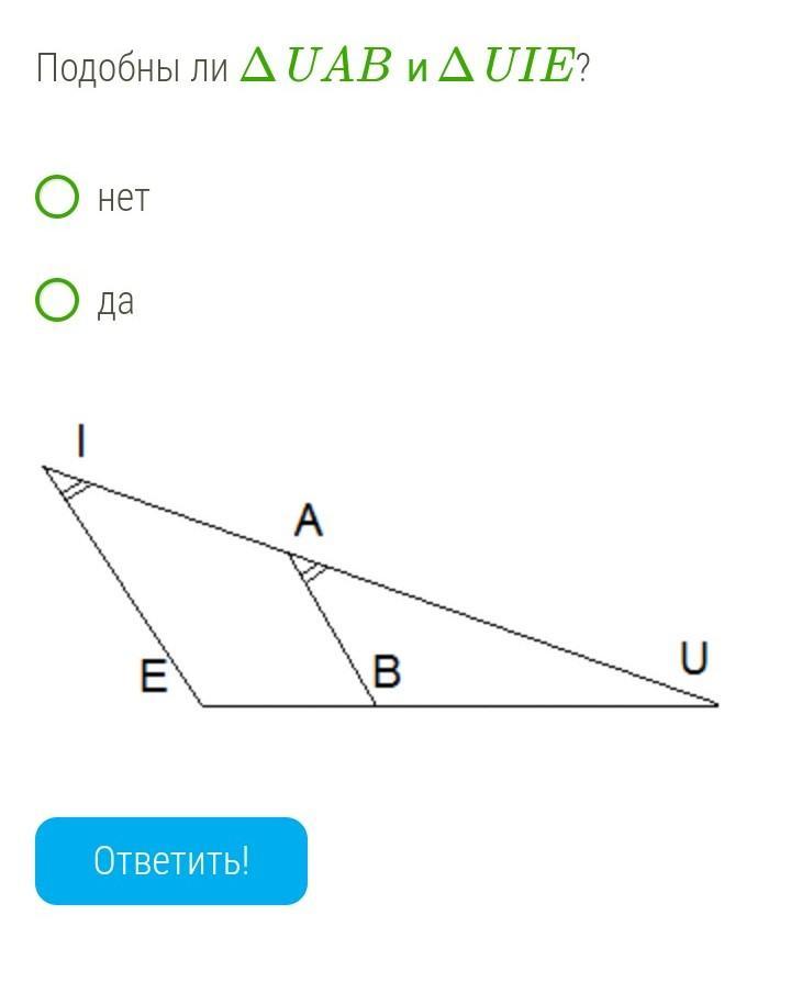 Треугольники подобны по двум углам: угол IUE равен углу АUB, угол EIU равен углу BAU