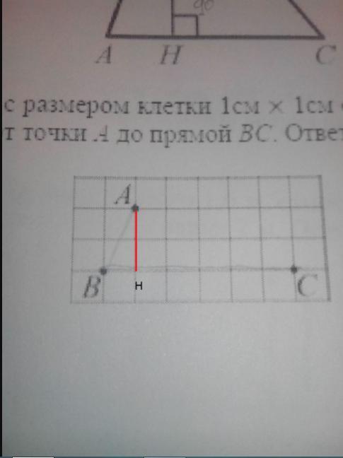 На клетчатой бумаге с размером клетки 1×1 отметили три точки А ,В и С .Найдите расстояние от точек А до прямой ВС.
