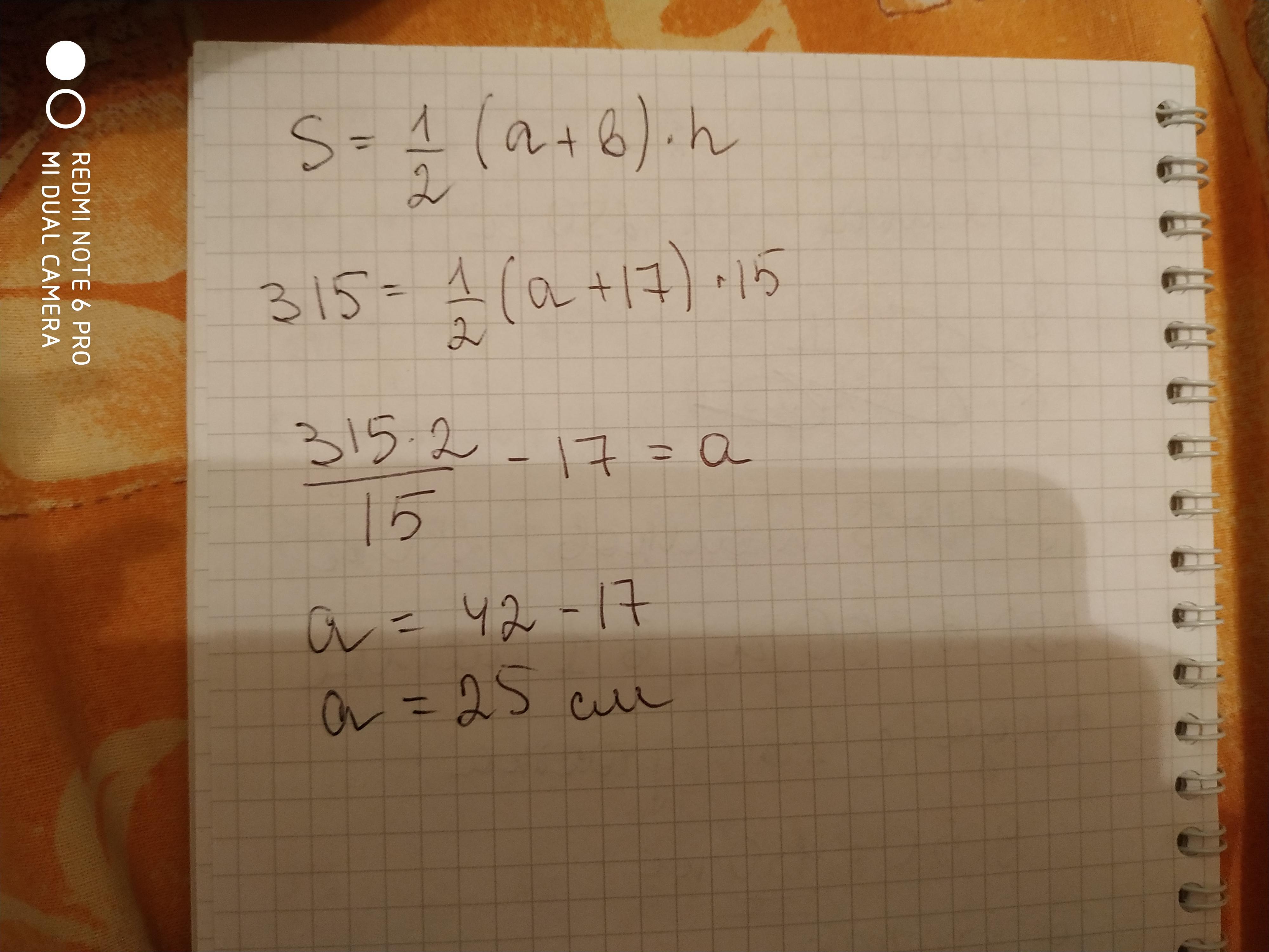 a=(2*315)/15-17=25 см