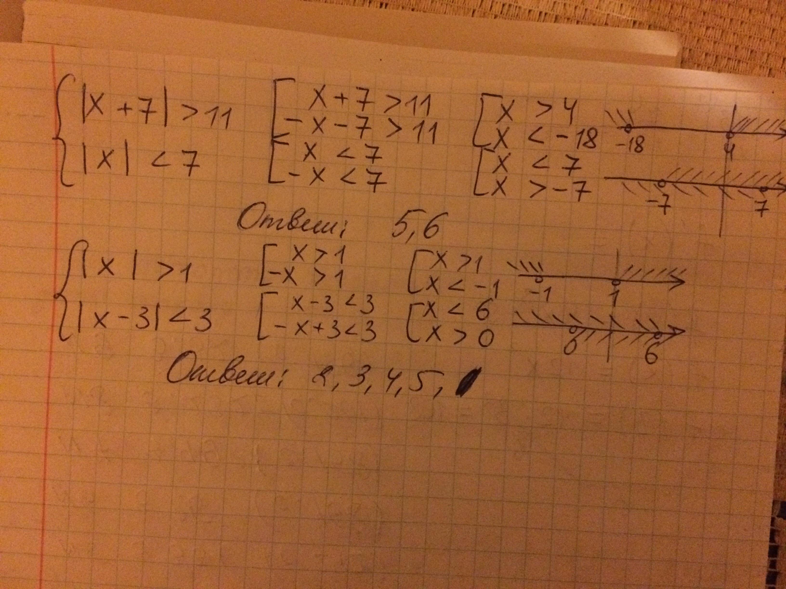 |х+7|>11и |х|<7