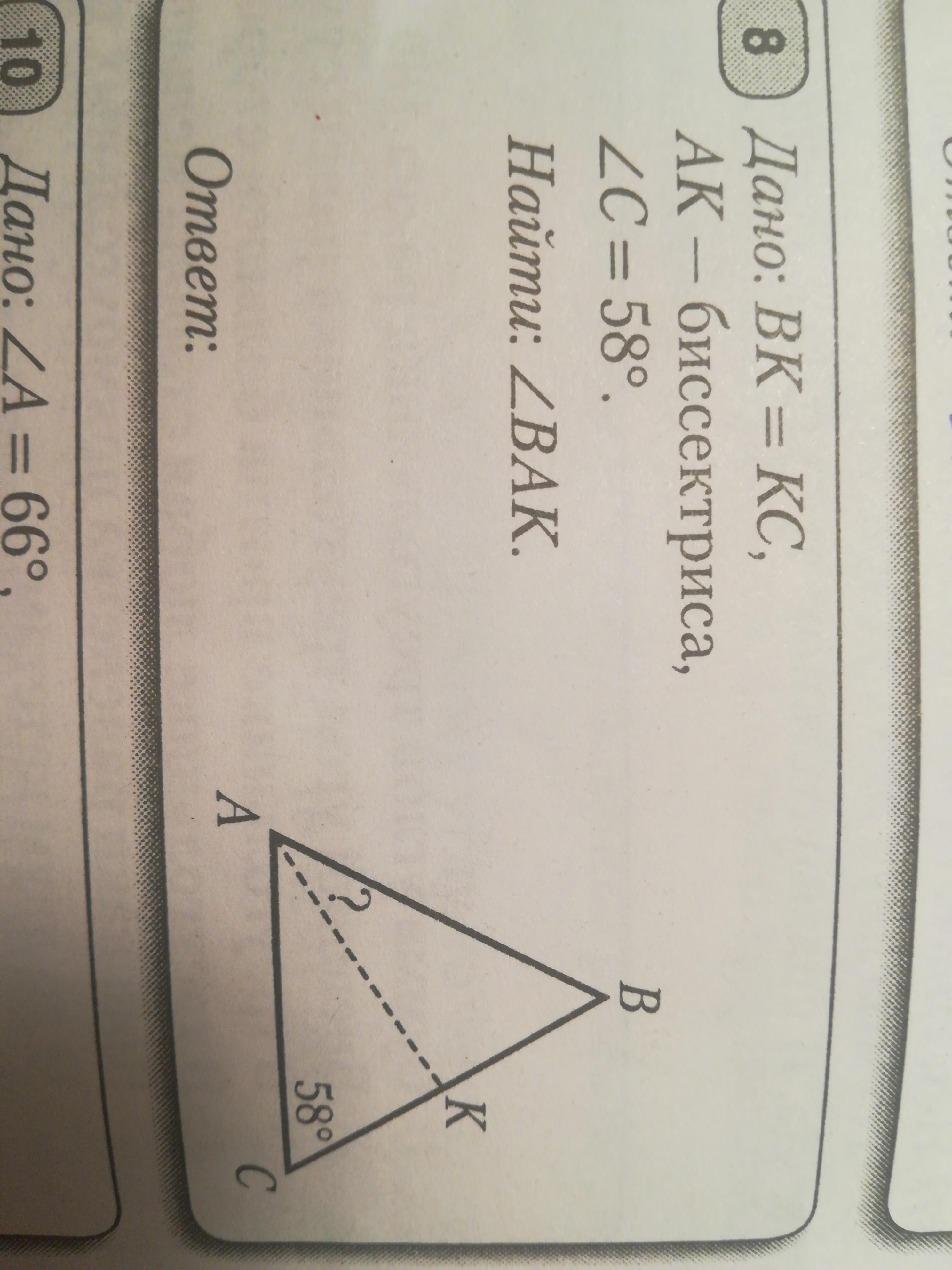 Так как треугольник АВС-равнобедренный, то угол С=углу А=58°