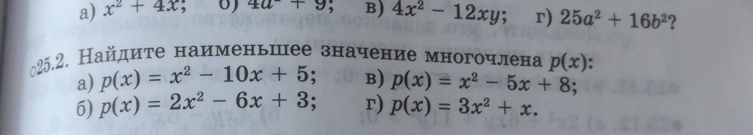 в) p(x) = x² - 5x + 8 = x² - 5x + 6,25 + 1,75 =(x - 2,5)² +1,75.