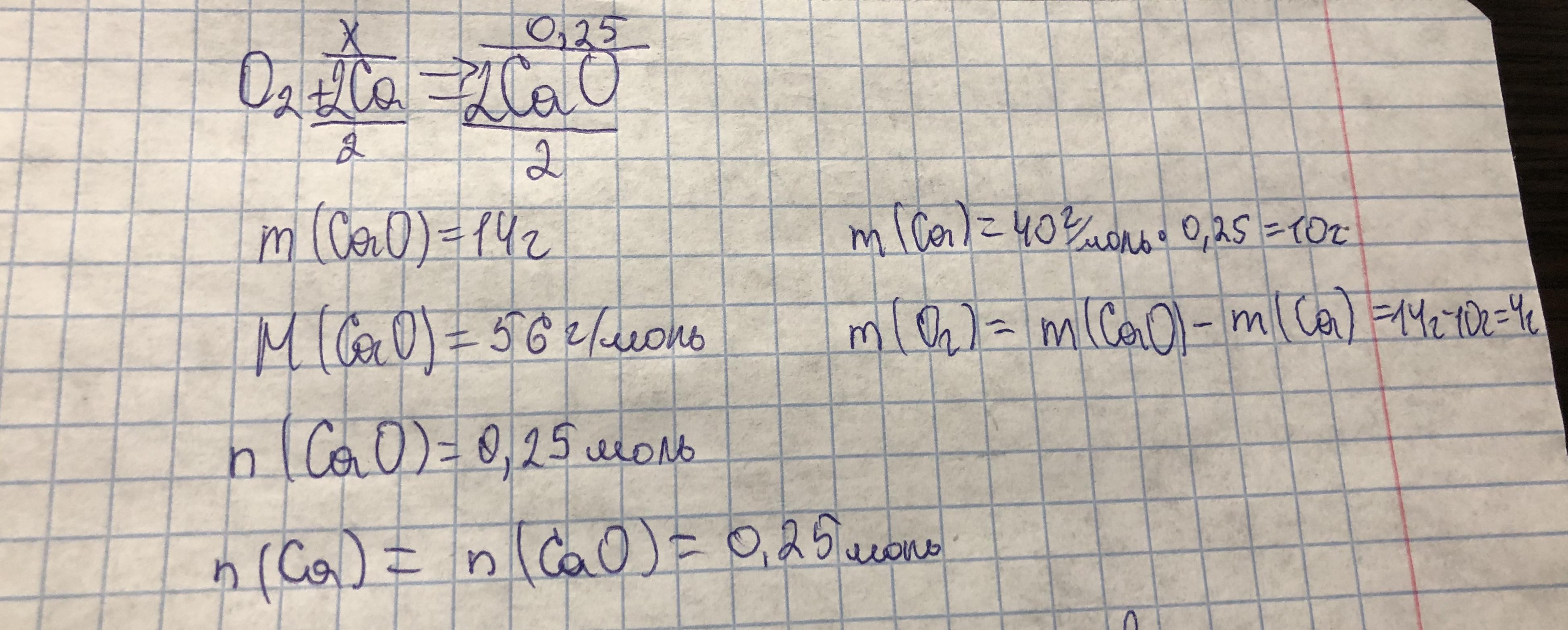 Ответ: m(Ca) = 10г, m(O2) = 4г