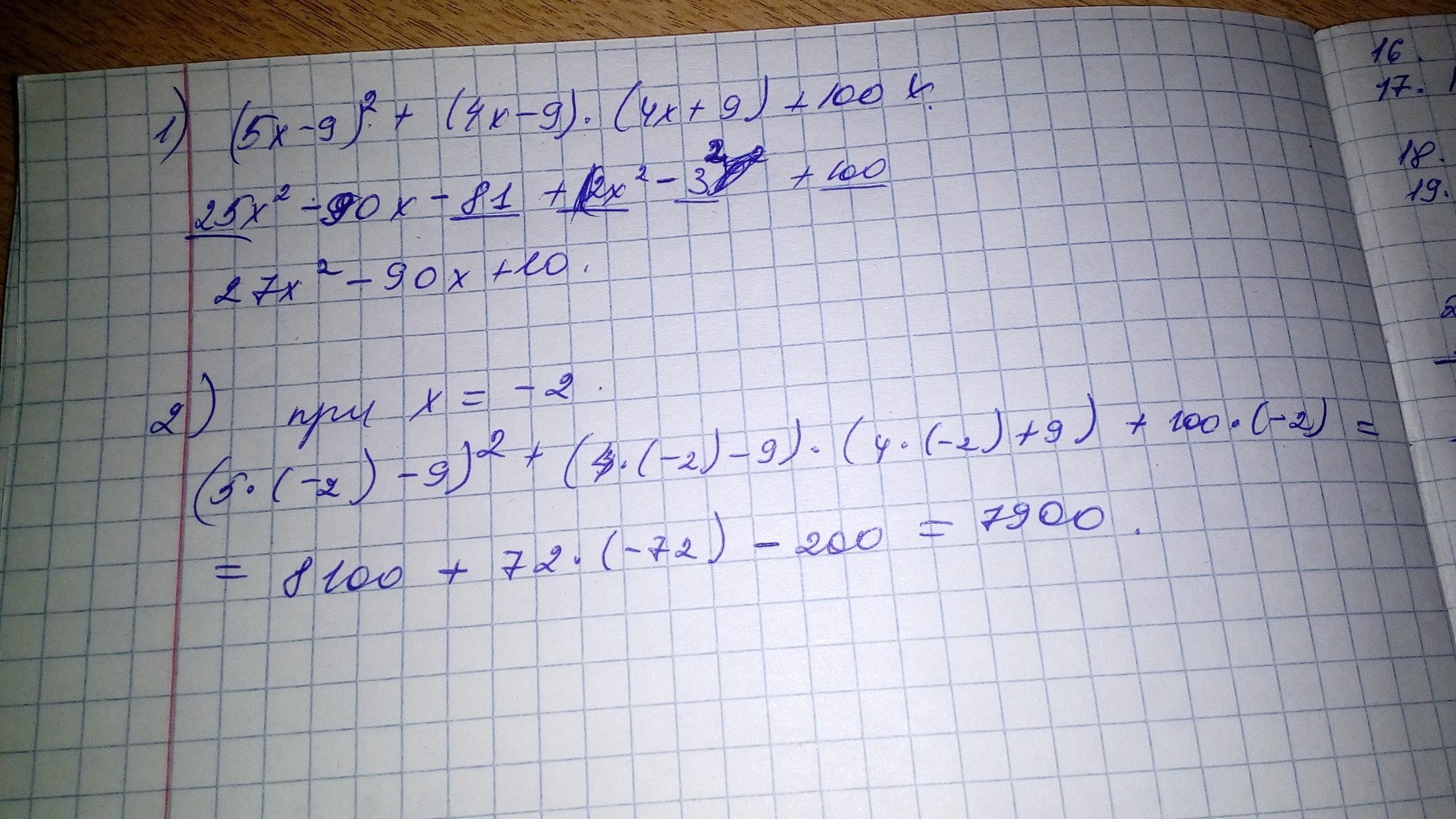 вычислите выражение: (5x-9)^2+(4x-9) (4x+9)+100x при x= -2