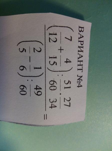 ( frac{7}{12}  +  frac{4}{15} ) div  frac{51}{60 }  times  frac{27}{34}  =  frac{27}{34}
