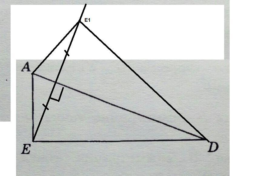 Нахожу симметричную точку Е1, для этого под прямым углом AD провожу прямую из точки Е до пересечения с АD (получаю точку О ) и продлеваю ее на расстояние ЕО, получаю точку Е1.