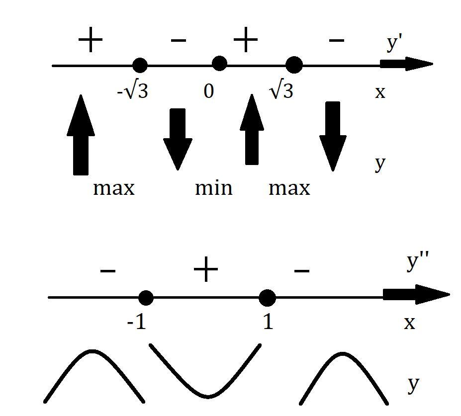 4. Исследование с помощью первой производной (экстремумы и возрастания и убывание функции).