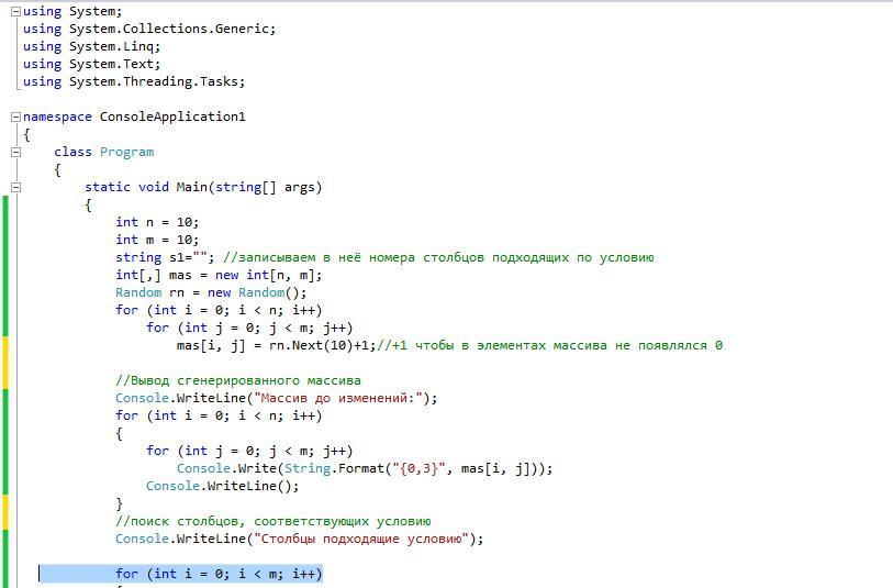 Массив заполняется рэндомными числами размерность массива задается в начале метода Main
