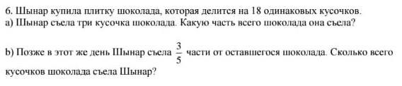 б) 18 - 3 = 15 кусочков оставшегося шоколада