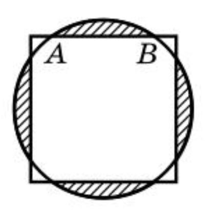 Центры круга и квадрата, изображённых на рисунке, совпадают. Сторона квадрата равна 15, а длина хорды АВ равна 5√3. Найдите площадь заштрихованной фигуры.