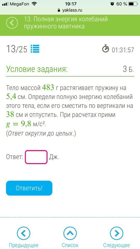 W=0.483*9.8*0.38²/(2*5.4*10⁻²)=6.33Дж