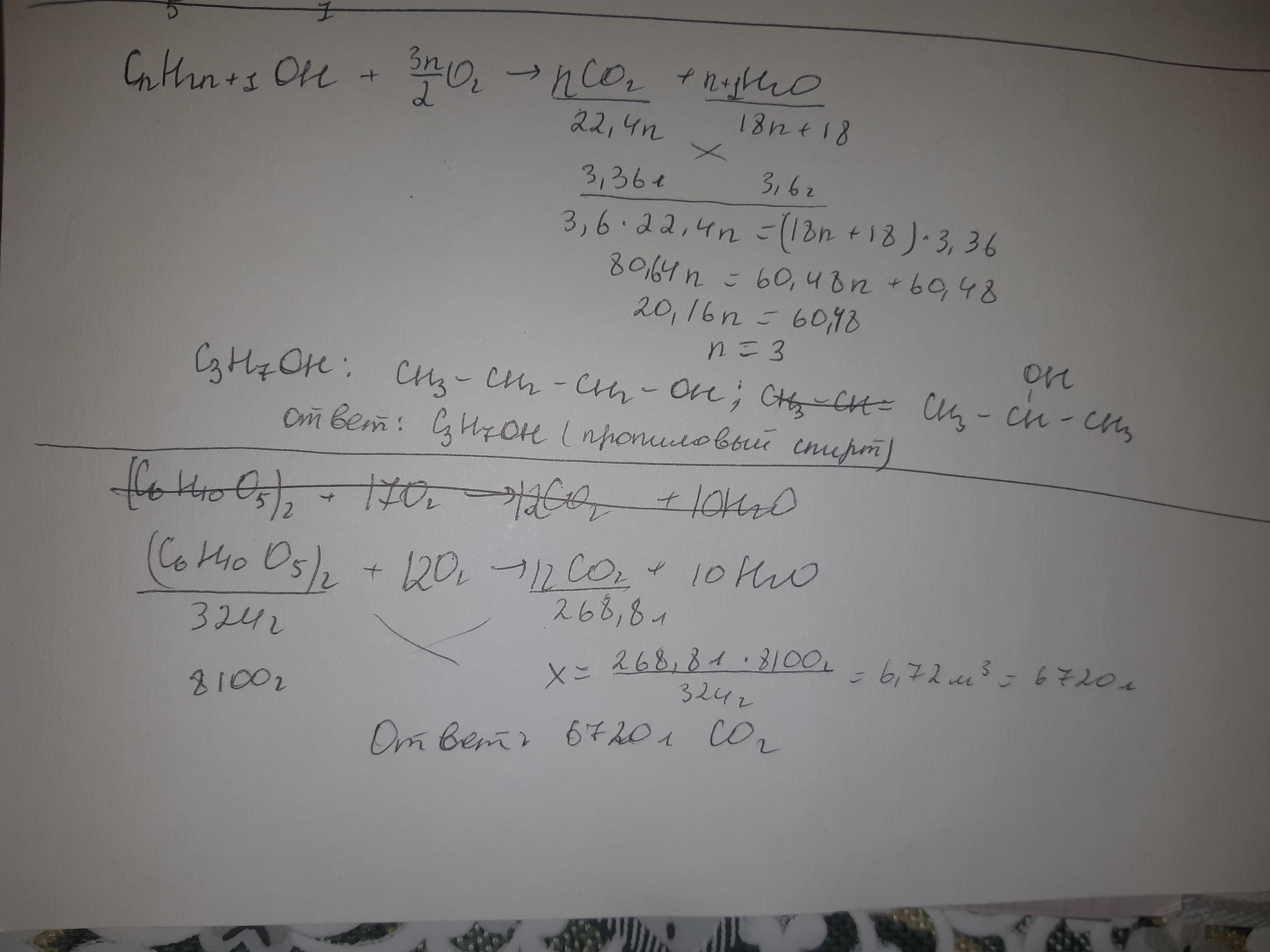 1) При сжигании определенного количества насыщенного одноатомного спирта образовалось 3.36 л карбон (4) оксида и 3.6 г воды. Установите формулу спирта укажите его молярную массу и напишите структурную формулу его изомеров.