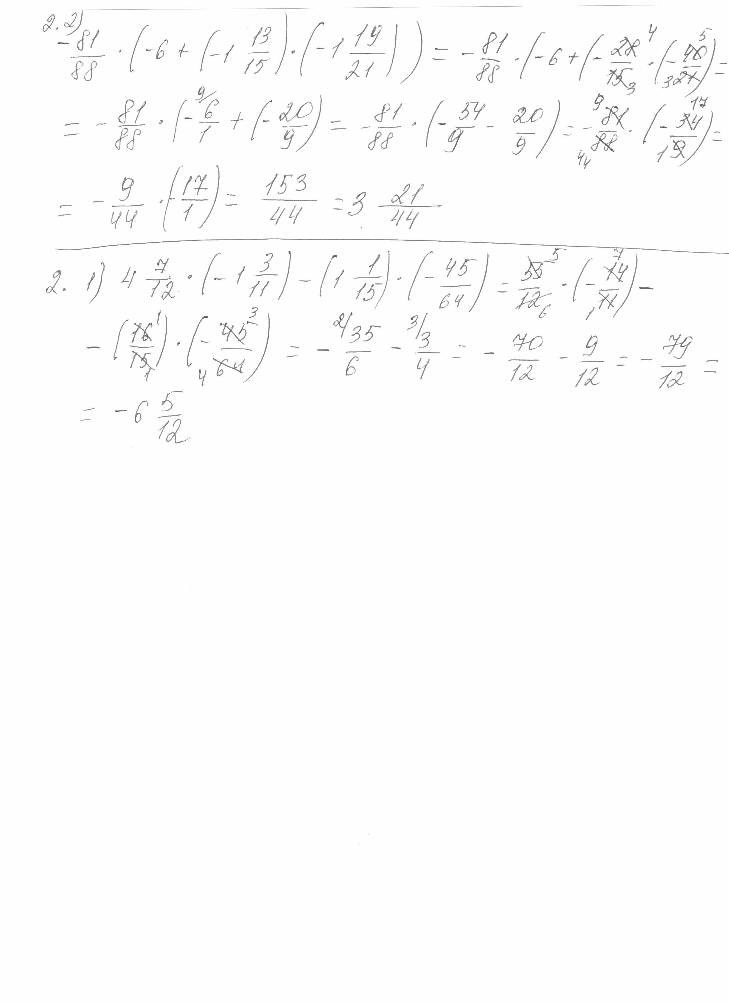 2. 1) 4 7/12*(-1 3/11)-(-1 1/15)*(-45/64)