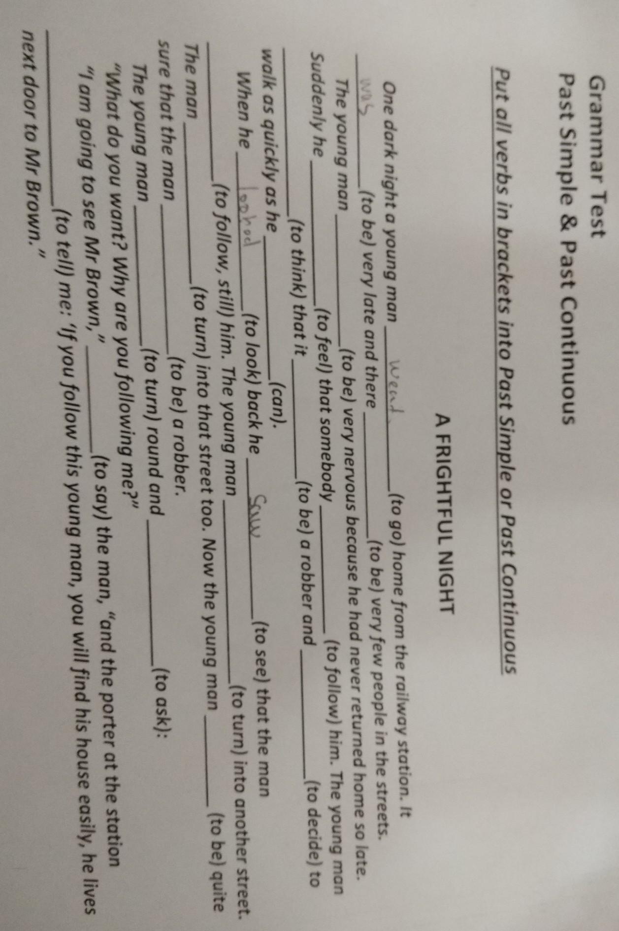 went, was, were, was, felt, was following, thought it was a robber, decided, he could, looked back, he saw, was still following, turned, turned, was, was, turned, asked, said, told