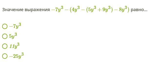 Значение выражения −7y3−(4y3−(5y3+9y3)−8y3) равно...