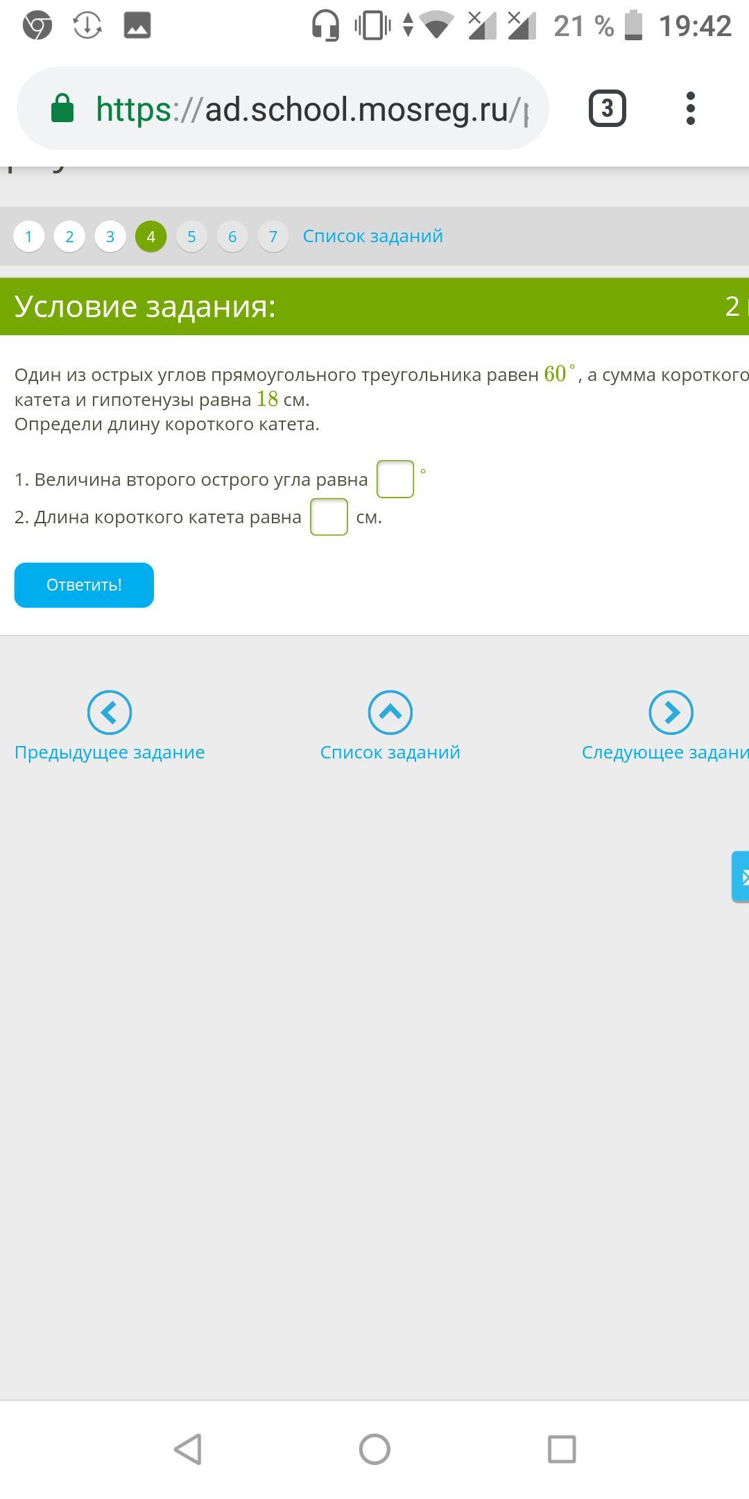 напротив угла 30°лежит катет в два раза меньше гипотенузы