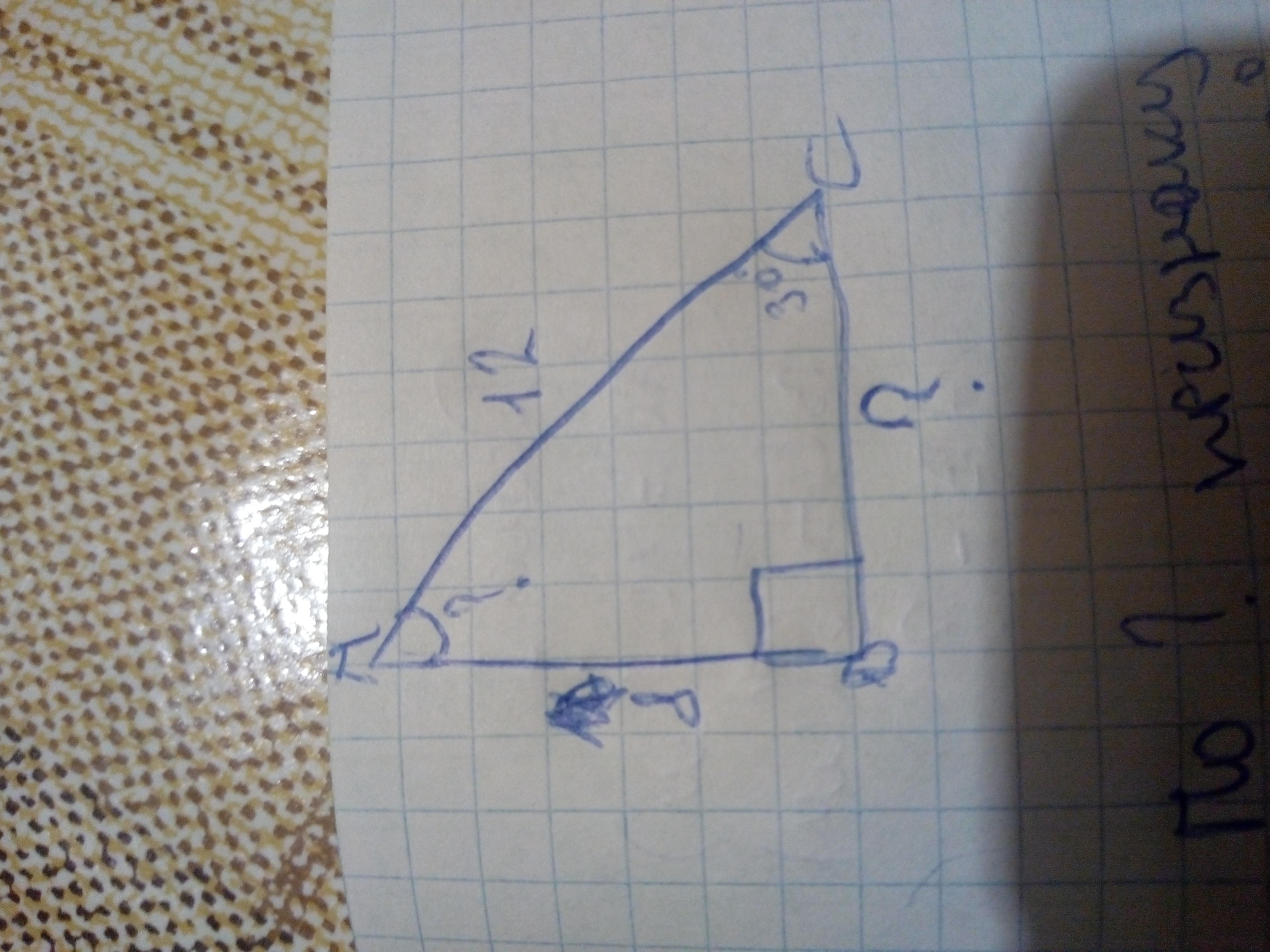В общем треугольник образует- 180 градусов,т.к. там известно2 угла,то мы можем посчитать: 180-30-90=60 градусов