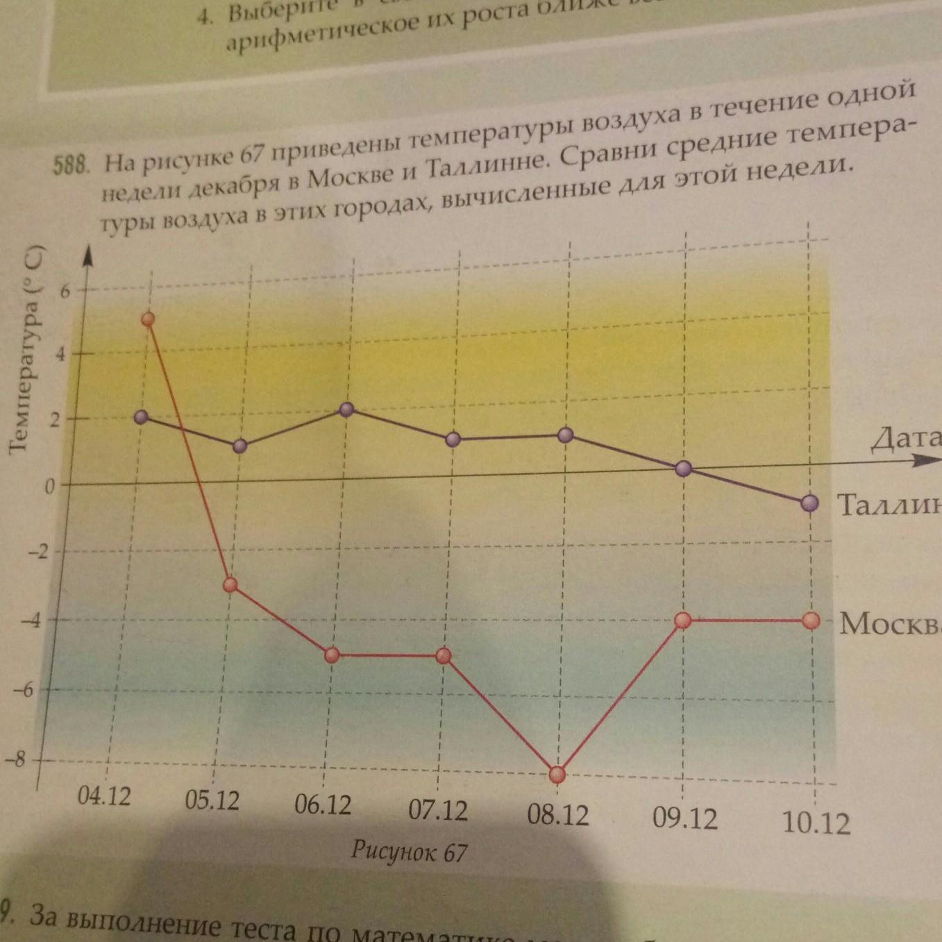 на рисунке 67 приведены температуры воздуха в течение одной недели декабря в Москве и таллинне. сравни средние температуры воздуха в этих городах, вычисленные для этой неделе