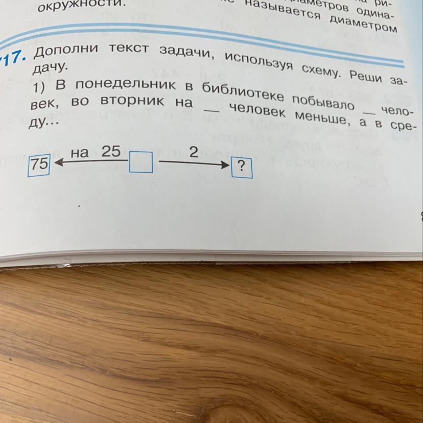 в понедельник было 100 человек, во вторник на 25 меньше( 100-25=75), а в среду на 2 больше чем в понедельник (100+2=102 человека)
