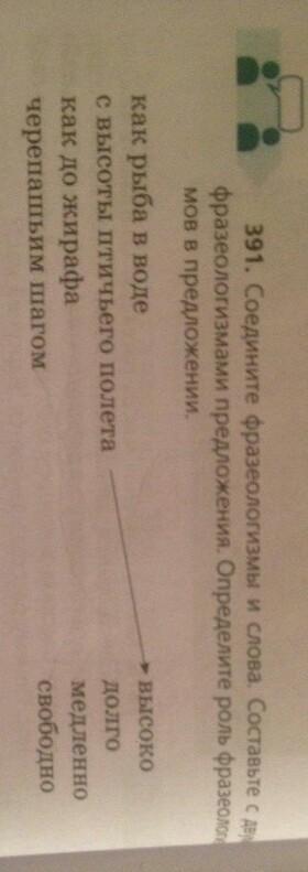 соедините фразеологизмы слова составьте с двумя фразеологизмами предложения Определите роль фразеологизмов в предложении