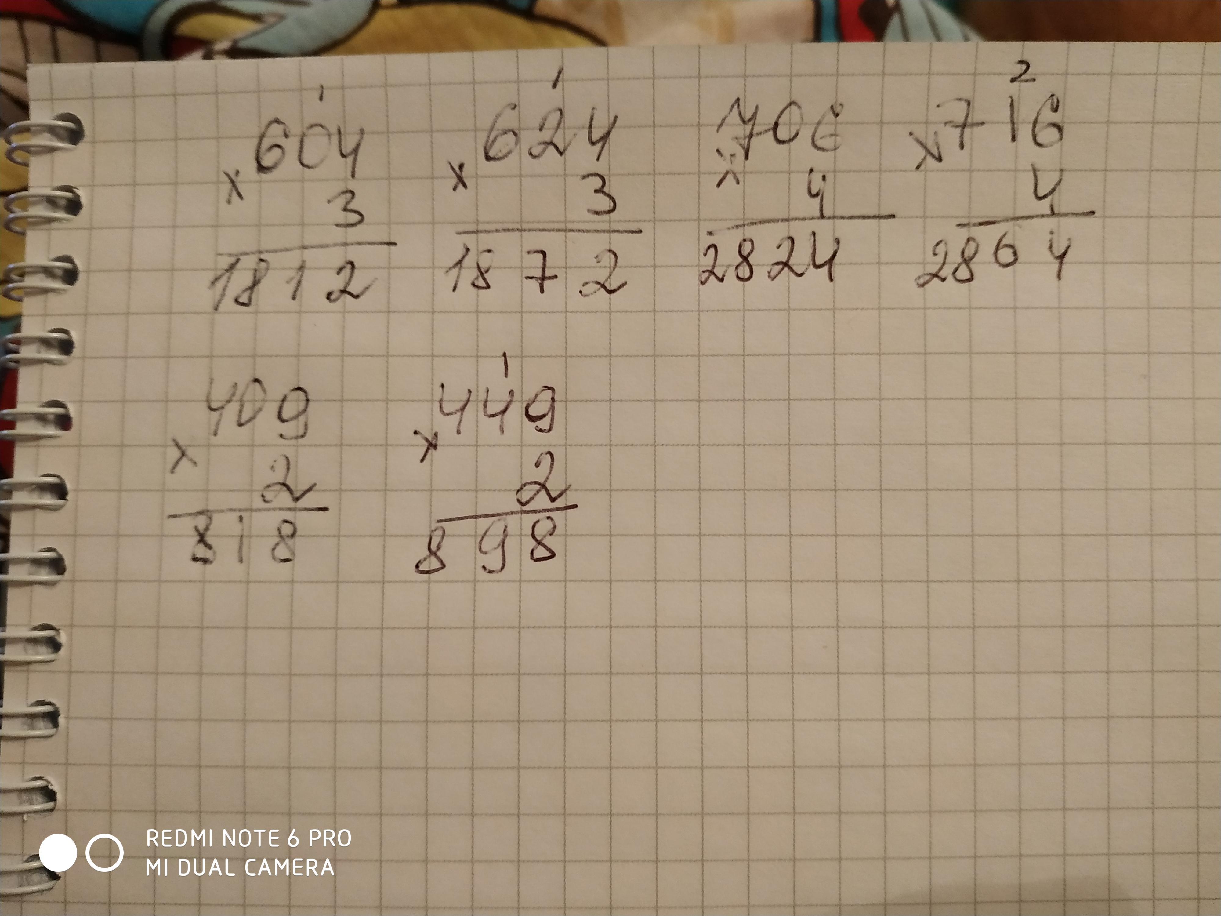 Выполни умножение.604×3 624×3 706×4 716×4 409×2 449×2